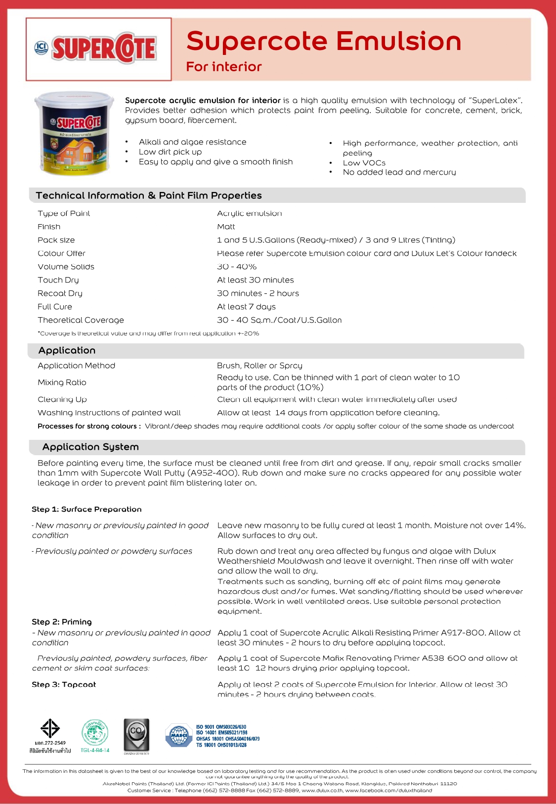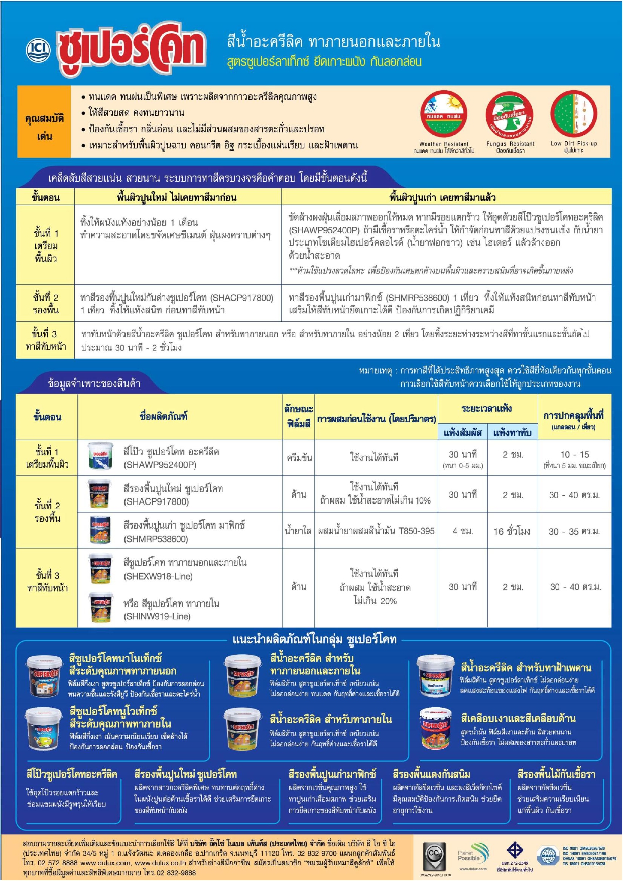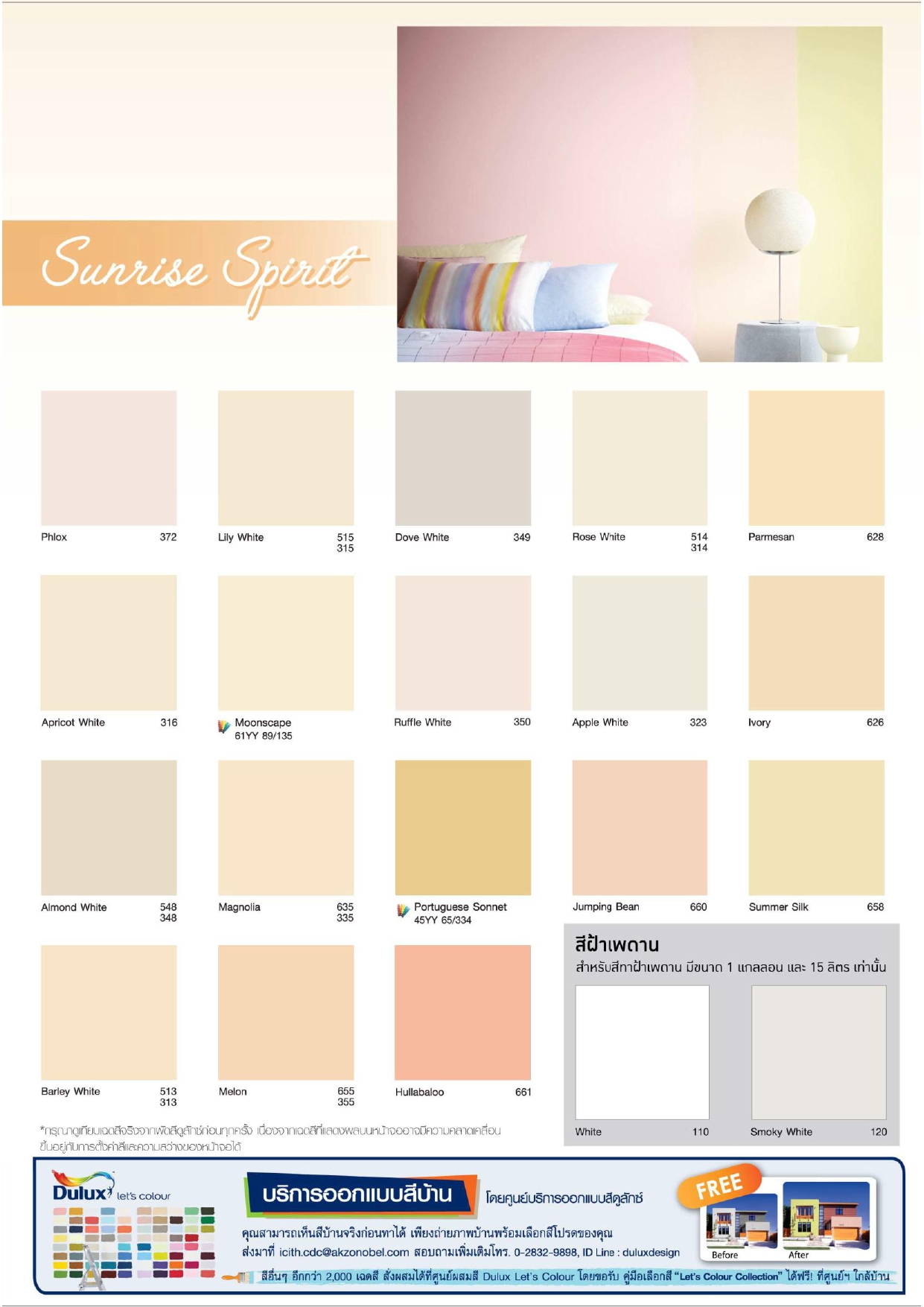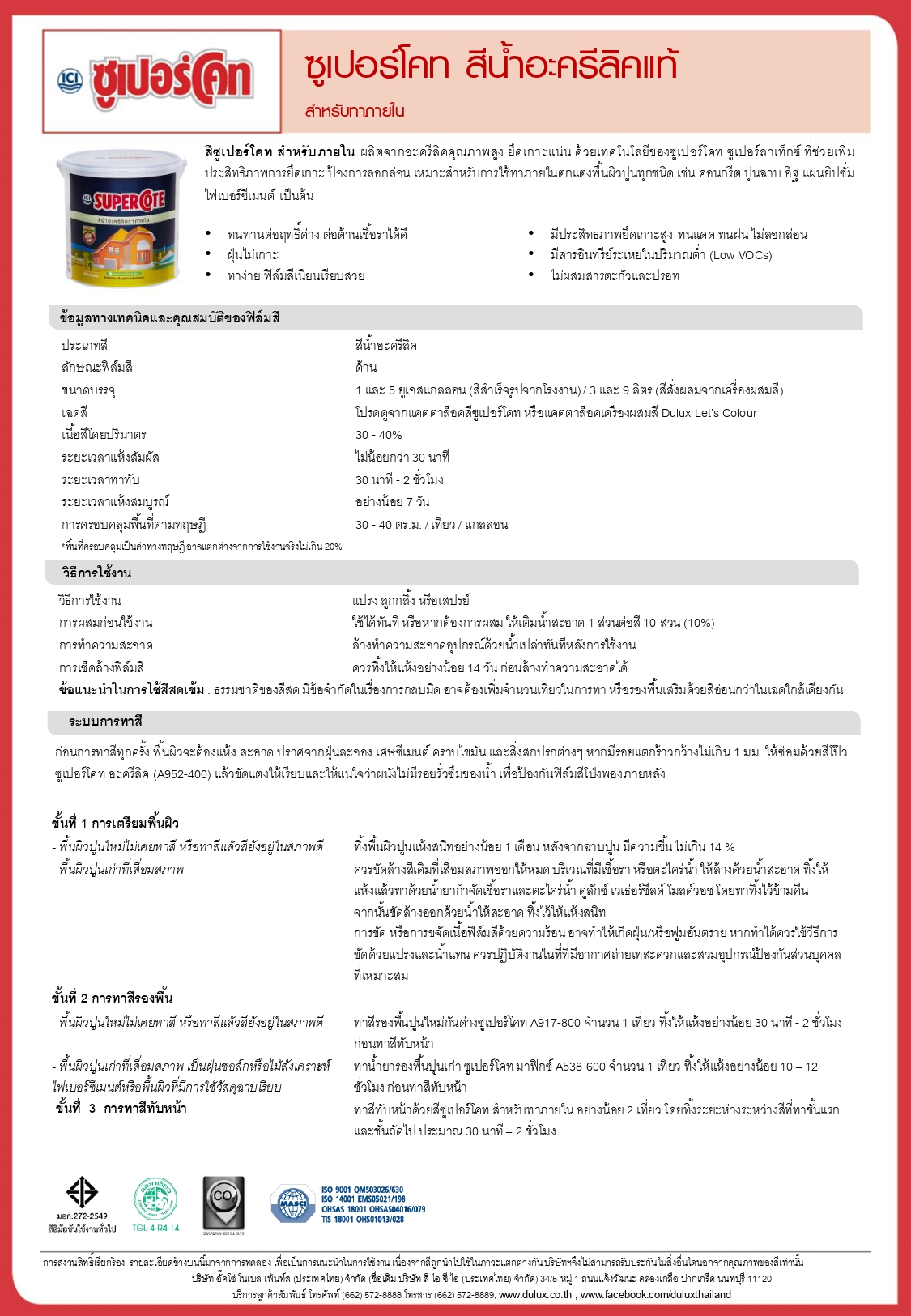 บริการลูกค้าสัมพันธ์ โทรศัพท์ (662) 572-8888 โทรสำร (662) 572-8889, www.dulux.co.th, www.facebook.com/duluxthailand